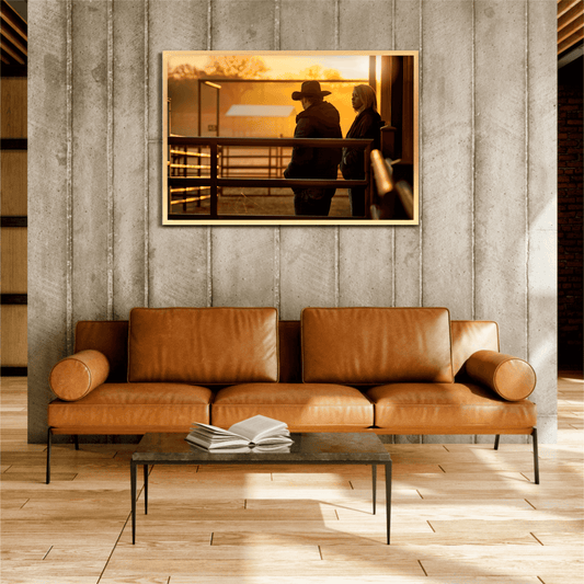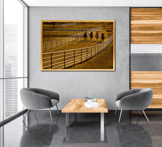Corral Sunrise: Ranch Hands at Daybreak in Golden Light