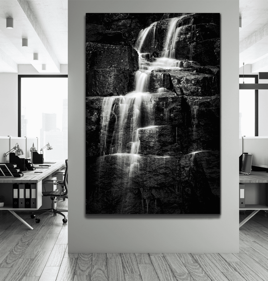 Woodland Cascade – Waterfall Near Acadia National Park – Fine Art Black and White Print by Michael Hart